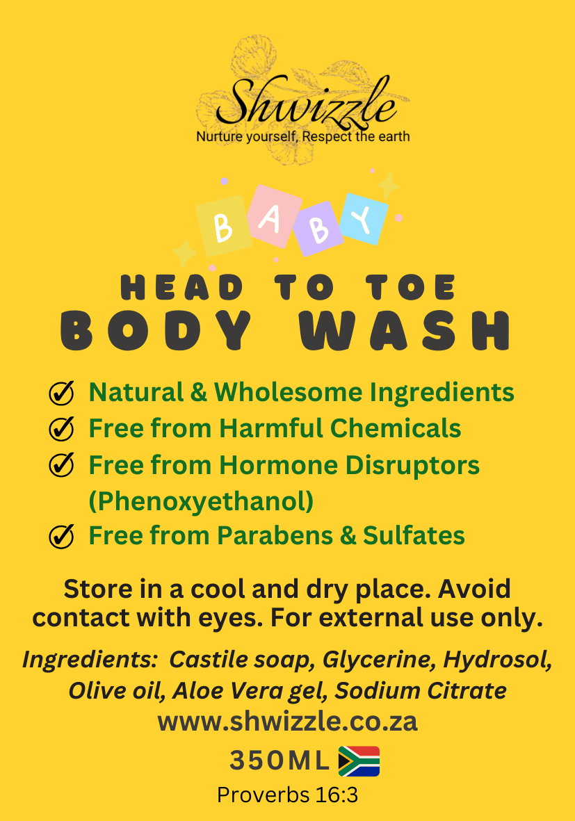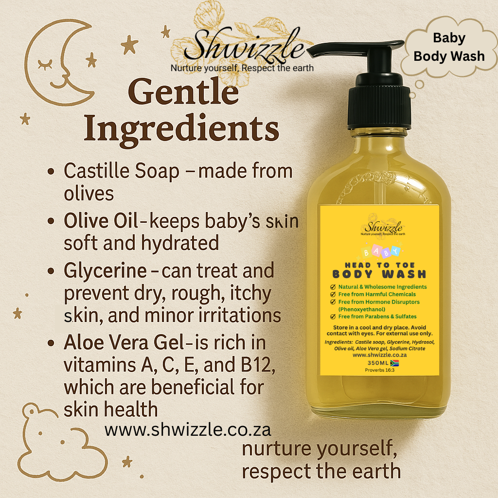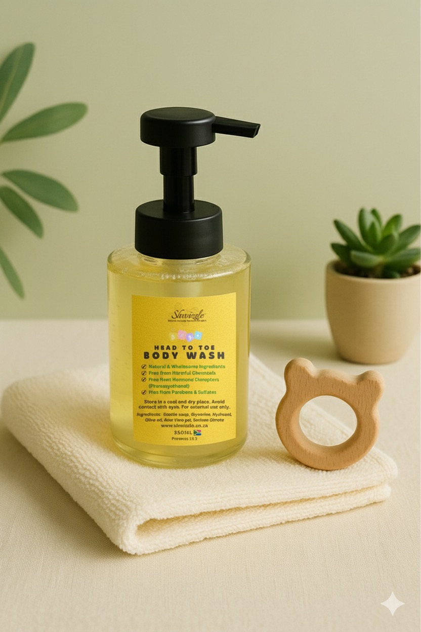 Our baby wash is made with plant-based ingredients and is free from harsh chemicals, sulfates, and artificial fragrances that can irritate sensitive skin. Perfect for daily use from newborn onwards.